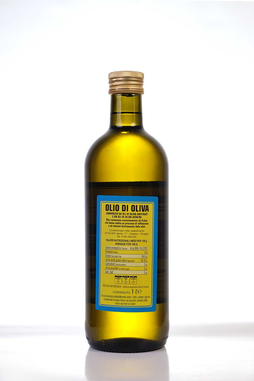 Il nostro Olio di Oliva viene preparato unendo all’olio di oliva raffinato – un olio derivante da un processo di raffinazione che permette di eliminare imperfezioni nell’aroma, nel sapore e nell’acidità – una percentuale di olio extra vergine di oliva di primissima qualità.
